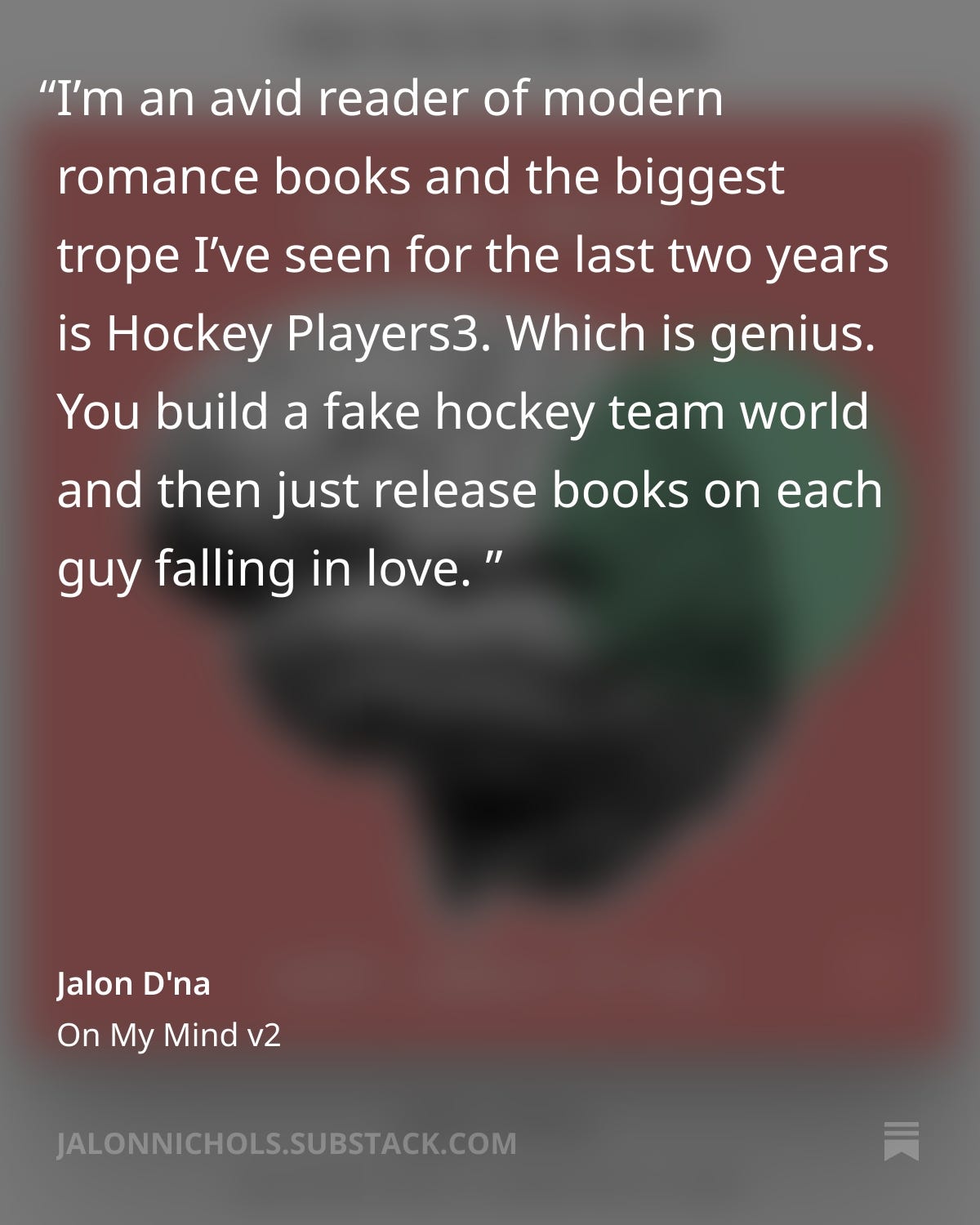 And also, if you are my actual friend irl, you already know I’m very deep2 into Hockey Romance. Like, I have so many hockey romance books in this house, it’s unreal.3